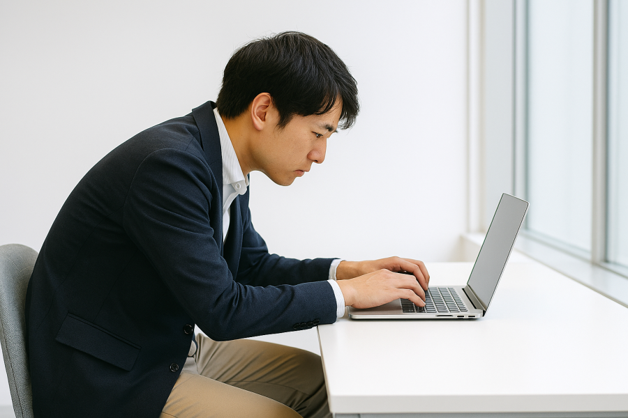 ☑ 長時間のデスクワークやPC作業では背中が丸くなっている